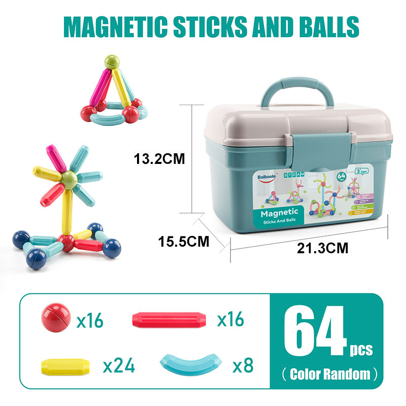 2. [ LLIWIAU LLAWR - DIOGELWCH ]: Mae gan wiail a pheli magnetig amrywiaeth o liwiau, sy'n lliwiau llachar i ddenu sylw'r babi a gwella gallu gwahaniaethu ar sail lliw plant.Mae'r cynnyrch yn grwn ac yn rhydd o burr, a gall plant chwarae'n ddiogel heb frifo eu dwylo.