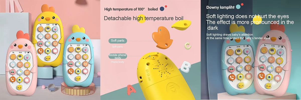 Fa'ailoaina o le Cartoon Chicken meataalo telefoni feavea'i!O lenei telefoni feavea'i meataalo matagofie e sau i ni lanu vi'ia se tolu - piniki, samasama, ma le lanu meamata, e fa'amalieina mo tamaiti laiti e fiafia e ta'alo ma su'esu'e.Faia i le ABS maualuga, mea fa'aeletoroni, ma se u'u silicone, o lenei meataalo e saogalemu ma umi mo tamaiti e fiafia ai.Fuafuaina i 13 ki ma 13 galuega eseese, o lenei meataalo telefoni feaveai o le a taofia tamaiti auai ma faafiafiaina mo itula i le faaiuga.E le gata i lea, o lo'o fa'aalia ai le fesuia'i gagana e lua i le va o le Saina ma le Igilisi, e mafai ai e tamaiti ona a'oa'oina ma fa'ata'ita'i gagana a'o latou ta'alo.Faatasi ai ma foliga faʻataʻitaʻiga telefoni, se pacifier silikoni maʻi, moli vaivai, faʻataʻitaʻiga leo faʻalogo, ma musika, o lenei meataalo ua tumu i elemene fefaʻasoaaʻi ma faʻamalosi e faʻaalia ai mafaufauga ma le fatufatuaʻi o lau tama.