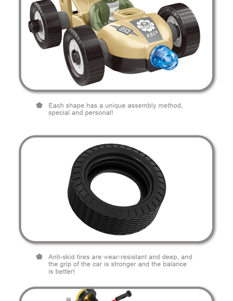 This assembling educational toy trains the fine motor skills of kids, help to develop kids’ brainpower and imagination, improve kids’ hand-eye coordination.