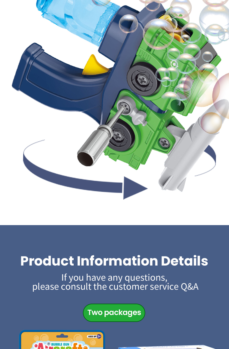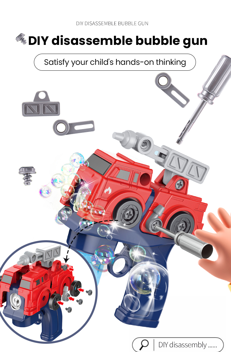 In addition to its educational benefits, the 2-in-1 Plastic DIY Screws Assembling Toys and Bubble Gun Blaster is also perfect for summer outdoor play. Whether it's a day at the park, a backyard adventure, or a playdate with friends, this toy provides endless entertainment for kids while encouraging them to stay active and enjoy the great outdoors.