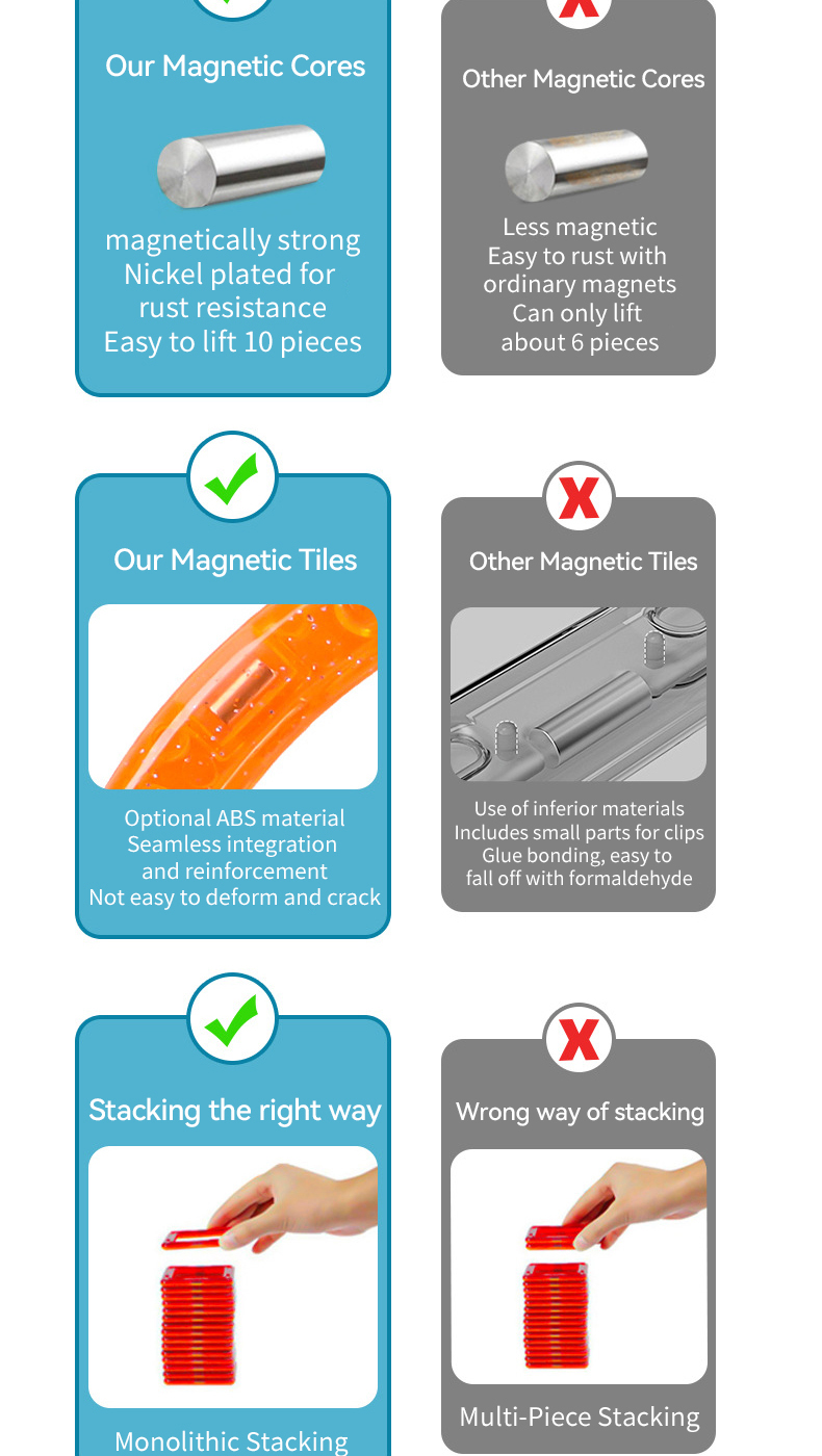 Our Magnetic Tiles Toys are specifically designed to help children develop their creativity, imagination, and spatial awareness. The strong magnetic force of the tiles makes it easy for children to build and create various structures, while also ensuring that the structures remain stable and secure. This feature not only enhances the play experience but also encourages children to explore and experiment with different designs and shapes.