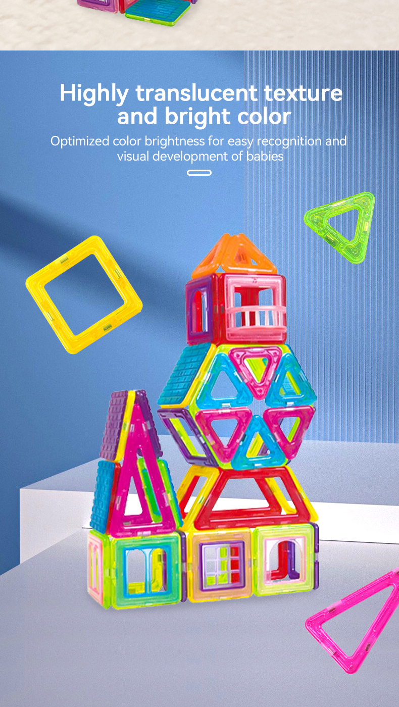Introducing our innovative and educational Magnetic Tiles Toys, designed to provide children with a fun and engaging way to learn and play. These magnetic tiles are not just ordinary building blocks; they are a versatile and interactive tool that promotes STEM education, fine motor skills training, and parent-child interaction.