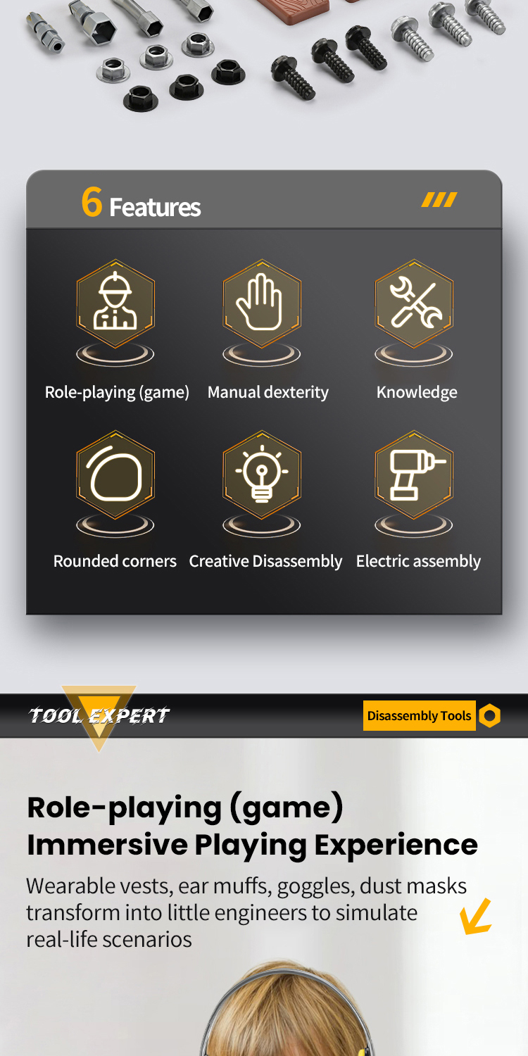 Each tool mimics professional equipment found in the real world. Whether it’s the appearance or the feel, every detail strives to provide the most authentic operating experience, letting children enjoy the fun of being an engineer during play.
