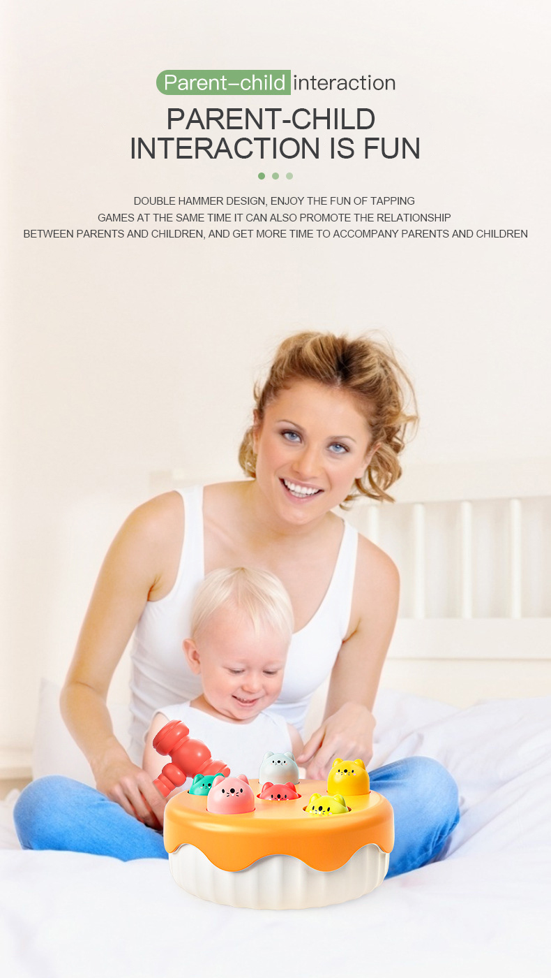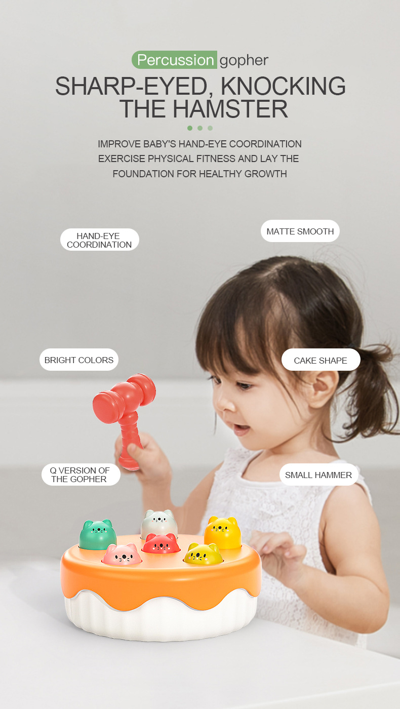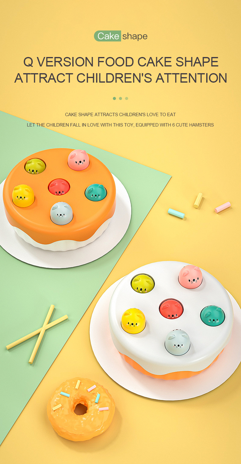 In search of a delightful cake-shaped toy? Give our Whack a Mole Toy a try! This game helps your baby develop hand-eye coordination and hand grasping skills and is great for parent-child connection. ideal for a baby's growth.