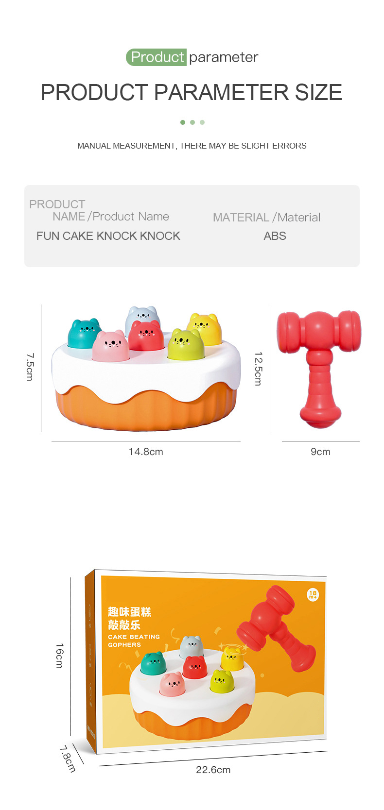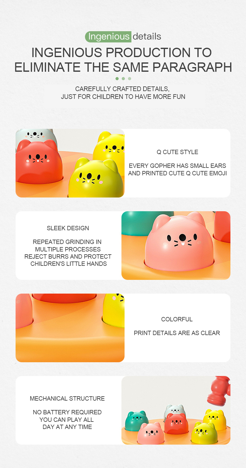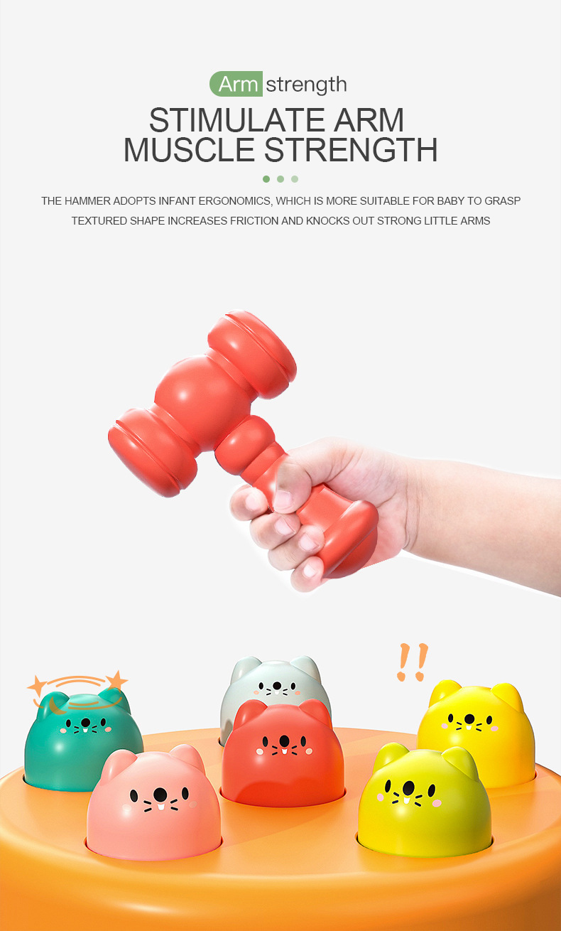 In search of a delightful cake-shaped toy? Give our Whack a Mole Toy a try! This game helps your baby develop hand-eye coordination and hand grasping skills and is great for parent-child connection. ideal for a baby's growth.