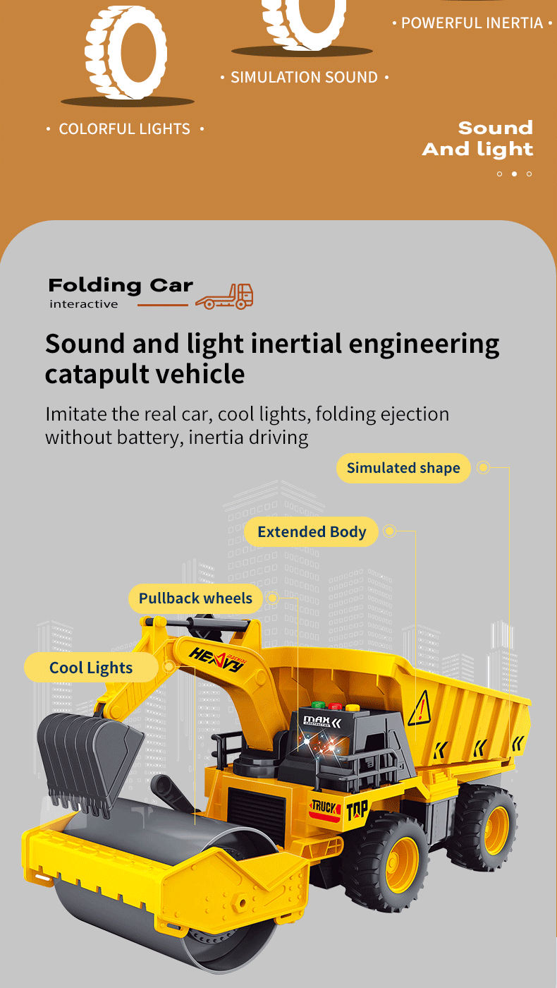 Featuring inertia driving, this toy allows kids to push it forward and watch it zoom across the floor with ease. The friction engineering design ensures smooth movement and realistic play, making it a thrilling experience for young construction enthusiasts.