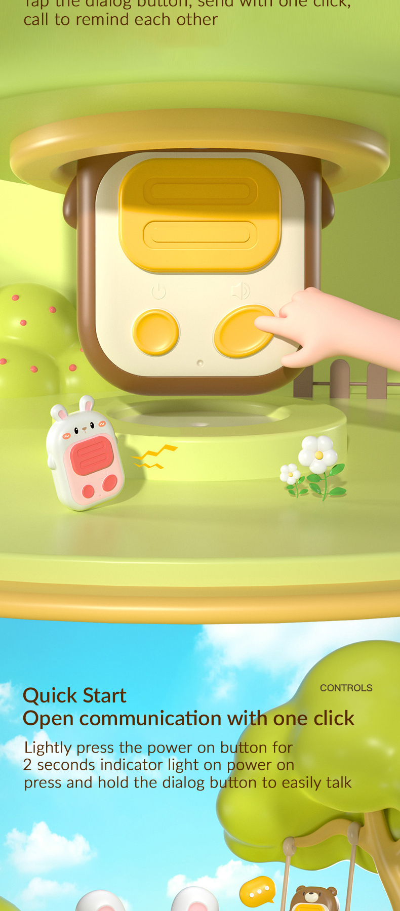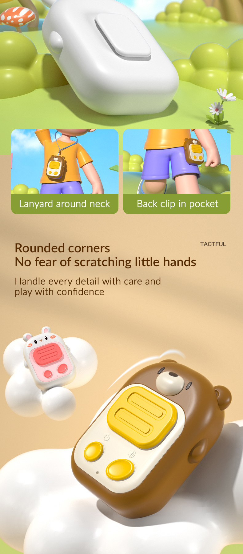 Introducing the Walkie-Talkie Toy, the perfect way to enhance communication skills and foster personal interaction in children. This adorable toy features a one-click call function, allowing for real phone communication and encouraging children to engage in social interaction with their friends and family. With a good signal and unobstructed delivery of conversation both indoors and outdoors, the Walkie-Talkie Toy ensures that kids can stay connected no matter where they are. The call ringtone adds an element of fun, while the stable communication distance of 500 meters and sensitive, fast reception guarantee real-time conversation with clear intercom and high-definition sound quality.