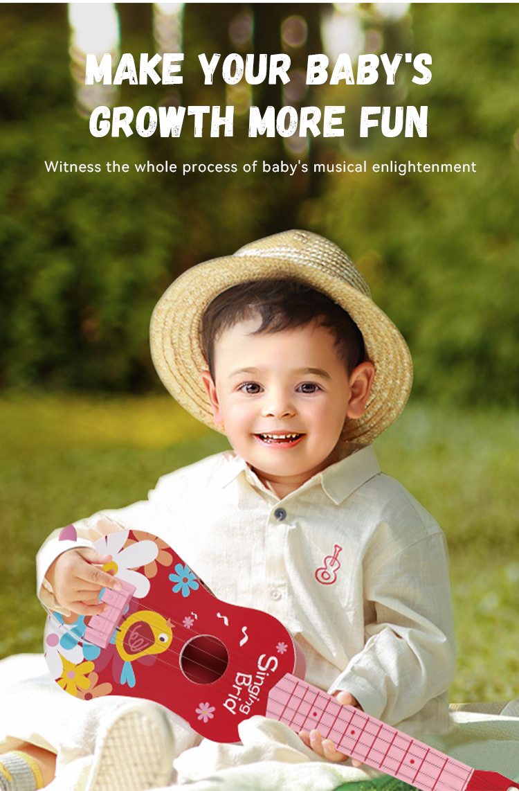 This educational toy ukulele is not only a fun musical instrument, but also a valuable learning tool. It helps children develop their sense of rhythm, coordination, and musical creativity. As they strum the strings and play different notes, they will be able to explore the sounds and melodies that they can create, fostering a love for music and self-expression.