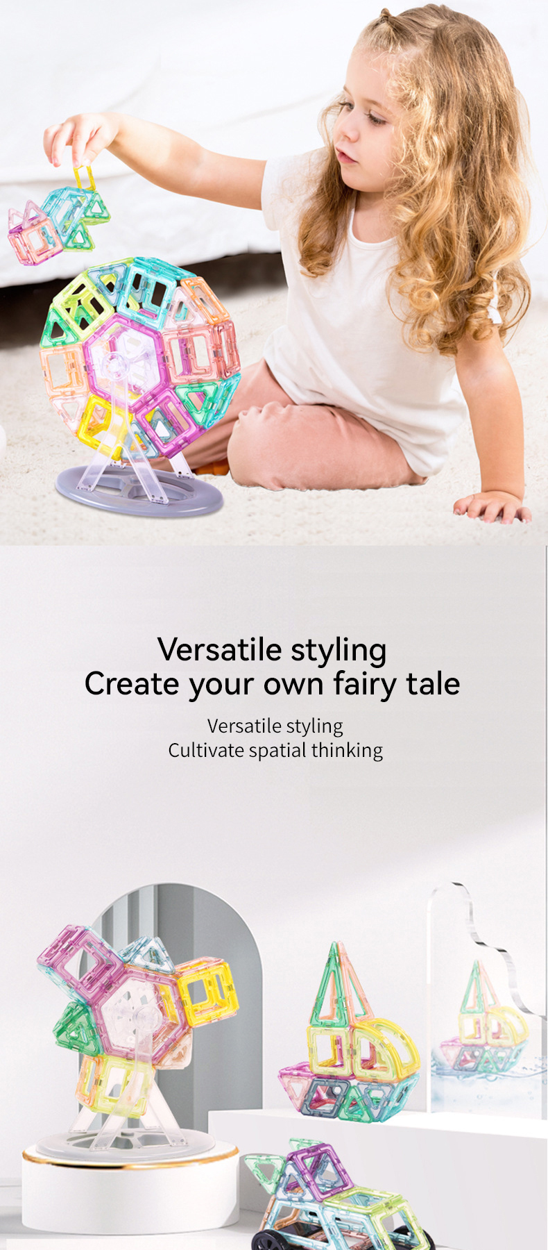 In addition to promoting safety, our Magnetic Tiles Toys are also a great way to develop creativity and imagination in children. The open-ended nature of these building blocks allows children to explore their creativity and express themselves through their creations. Whether they are building a majestic castle, a futuristic spaceship, or a colorful mosaic, the possibilities are endless, sparking a sense of wonder and excitement in young minds.