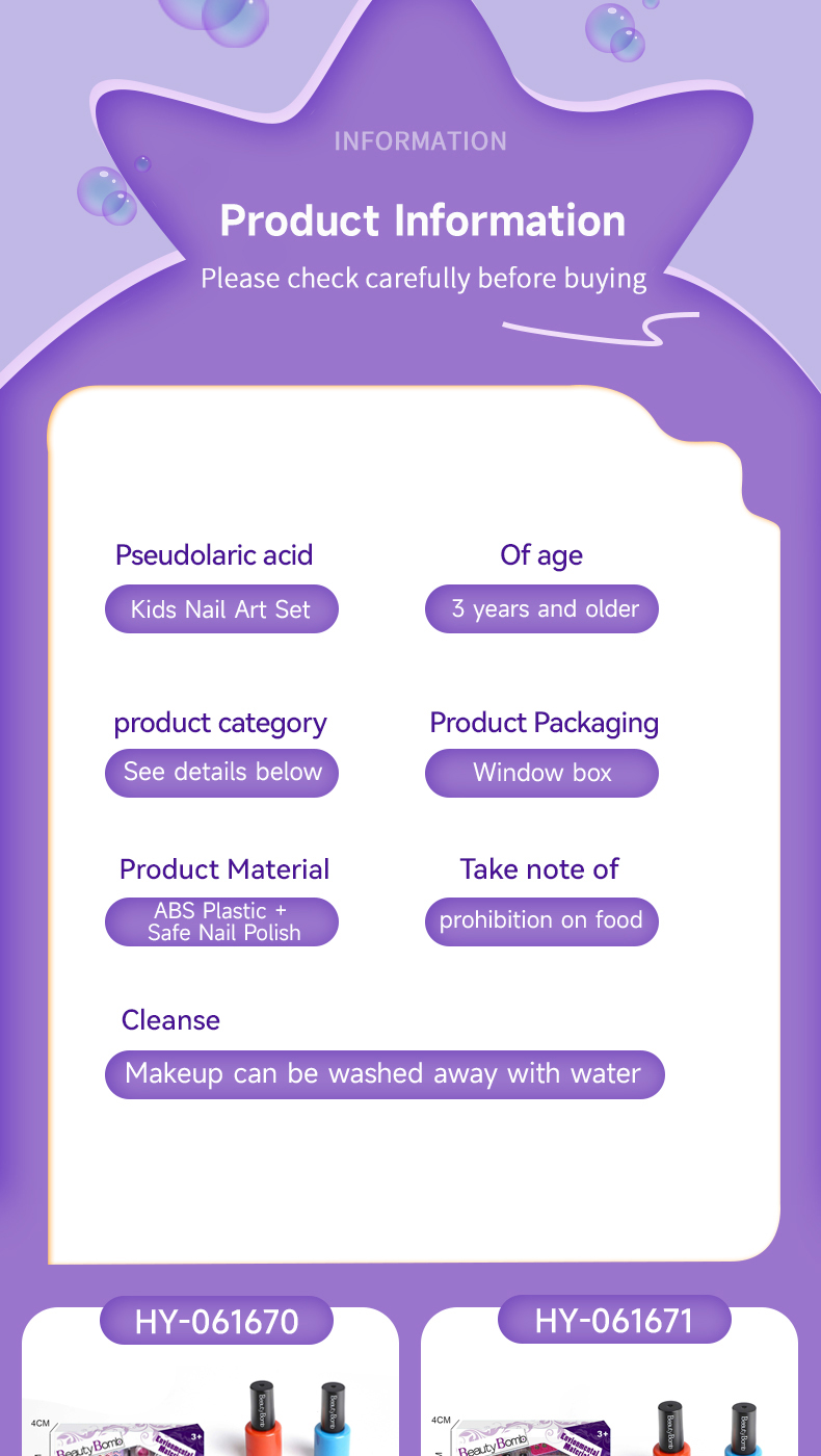 Choose our children's nail art set as a gift that combines fun with learning, setting a playground for imagination and creativity to thrive. With our nail art sets, children can dabble in the art of beauty, while parents can rest assured of the safety and educational value these toys provide. Embrace the power of play with our nail art sets, turning idle moments into enriching experiences that enhance intelligence, spark imagination, and unleash creativity.