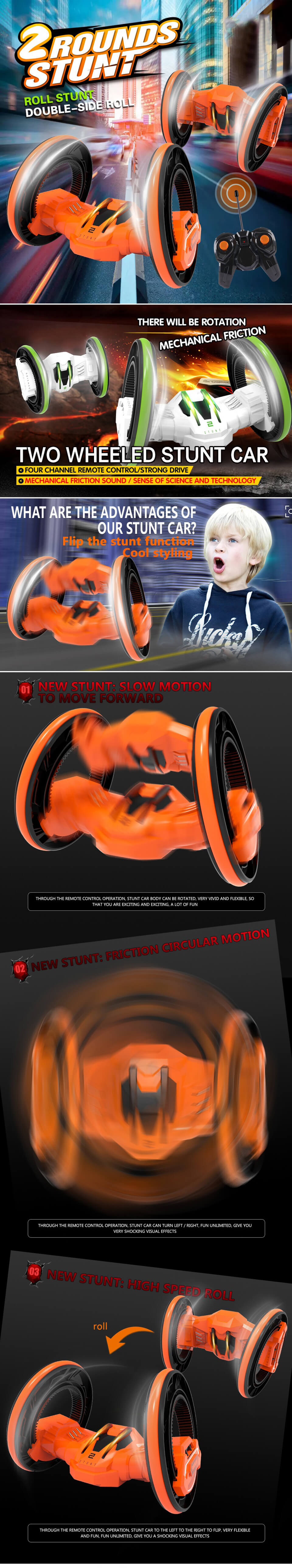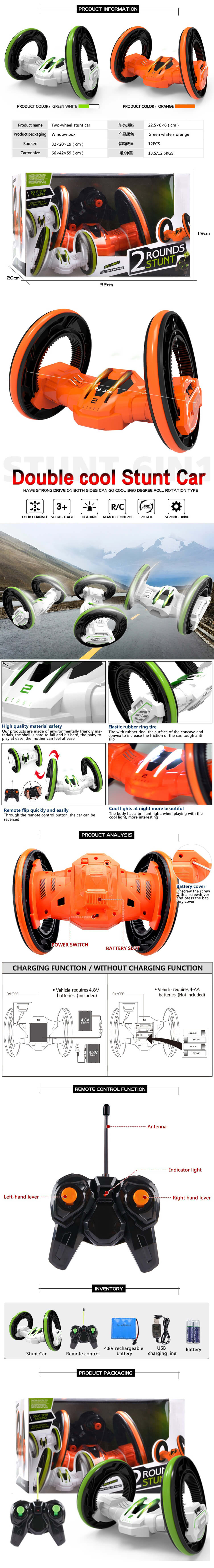 Cool Lighting RC Stunt Car Children Boy Surprise Gift Two Big Wheels Rotating Flip Radio Control Stunt Car Toys for Wholesale