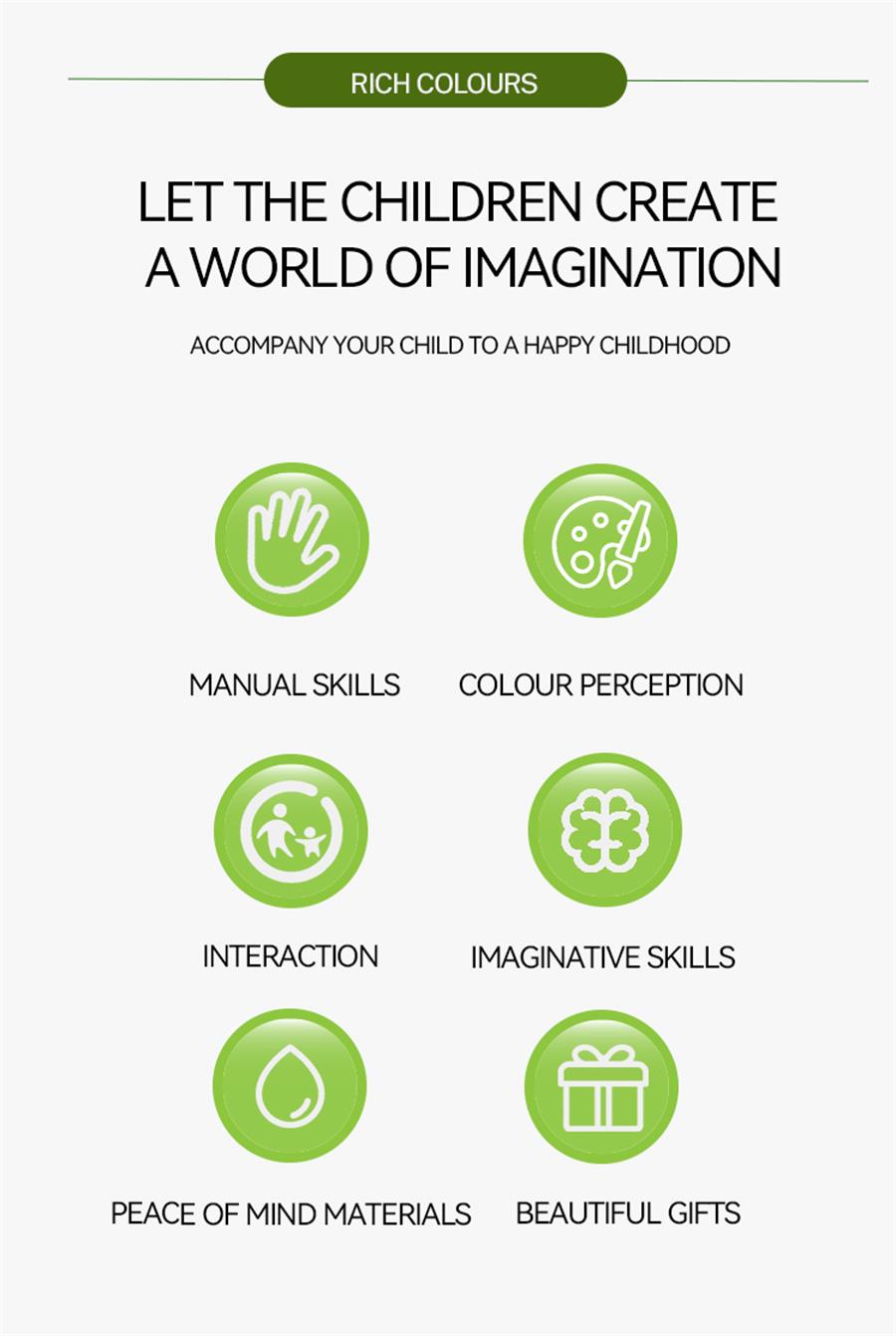 The colorful clay toy has eight different colored plasticines, which encourages kids to experiment with and learn more about color matching and recognition. Encourage the growth of their vision.