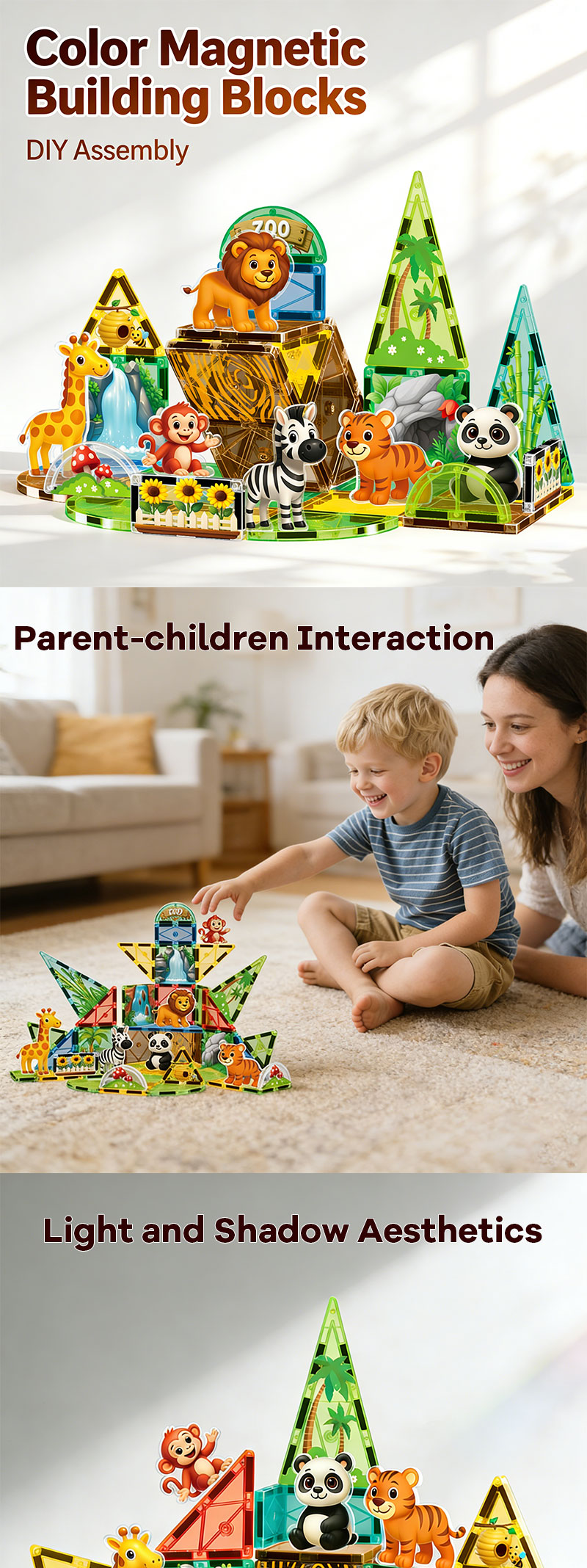 Combines magnetic building, animal role-play, and scene creation for interactive fun that develops fine motor skills and imagination.