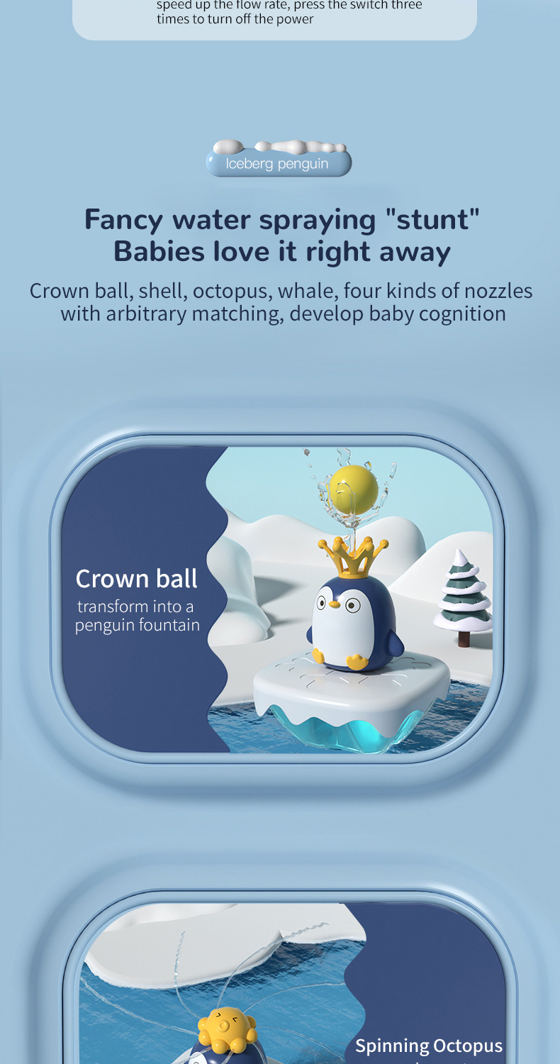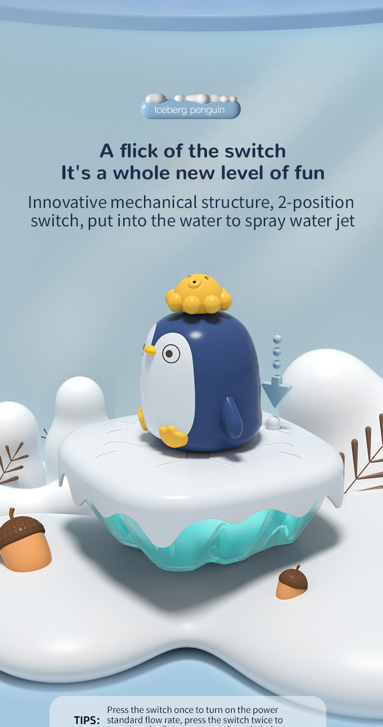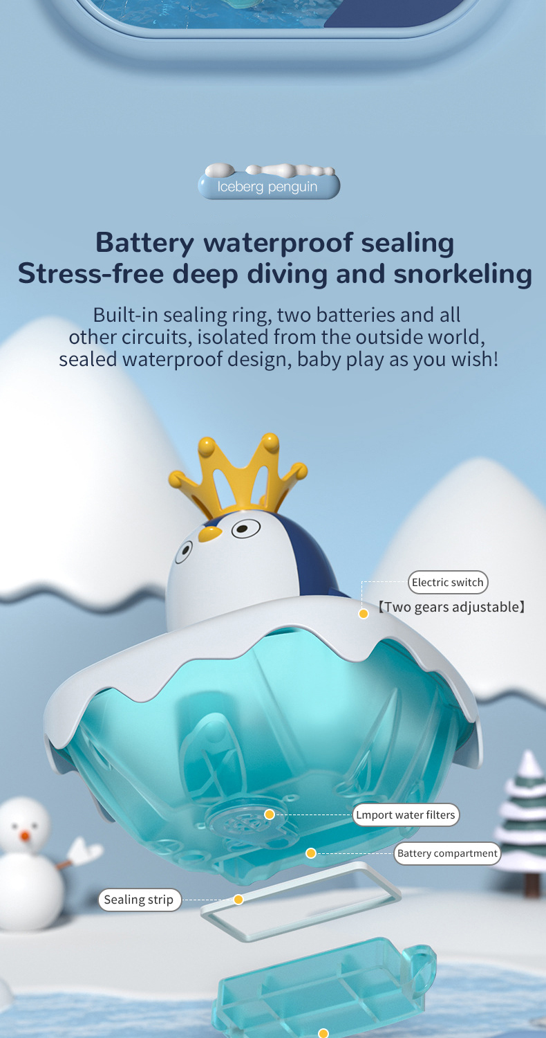 Introducing the Iceberg Penguin Electric Water Jet Toy, the perfect bath time companion for your little one. This adorable penguin-shaped toy is designed to make bath time fun and interactive, while also promoting parent-child bonding and play.