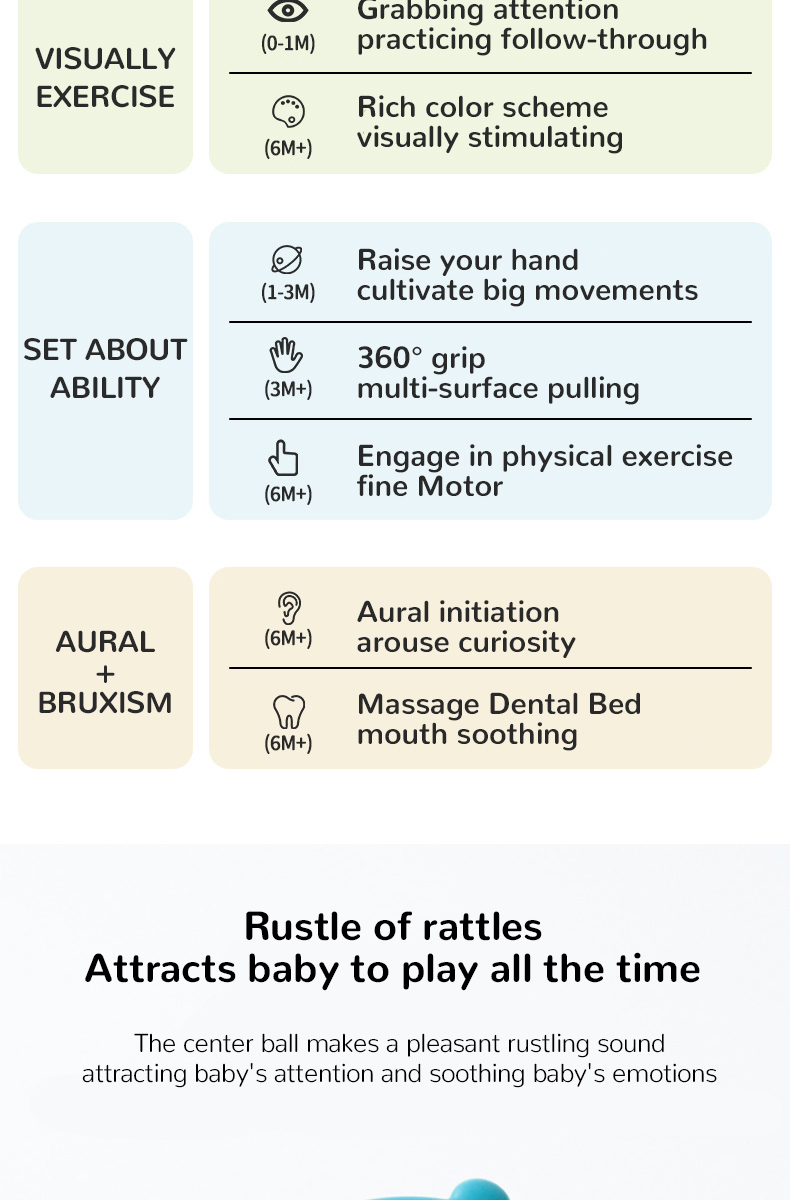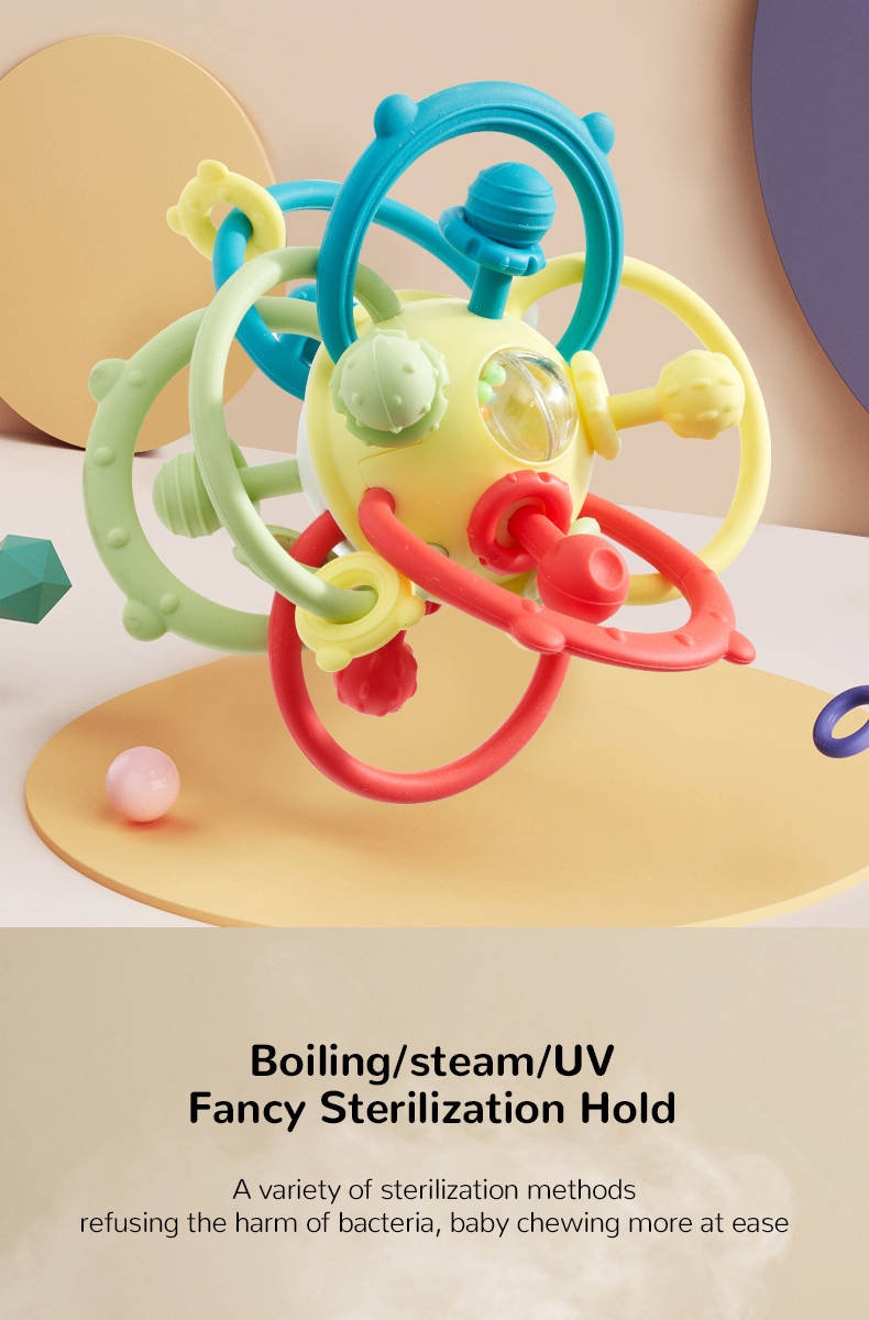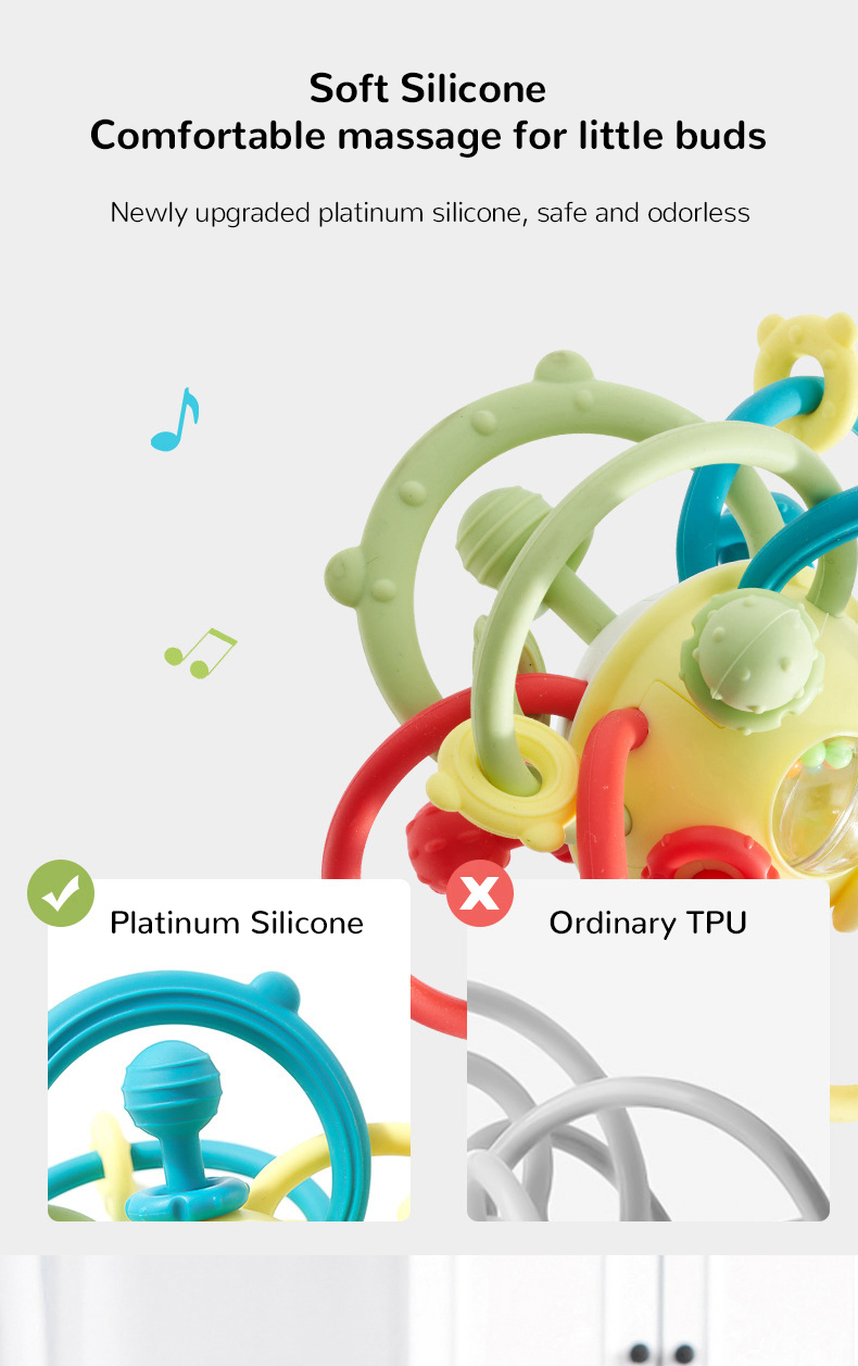 Infant Teething Relief Chew Toy Newborn Easy Grasp Ball Teether Developmental Activity Sensory Silicone Rattles Baby Toys