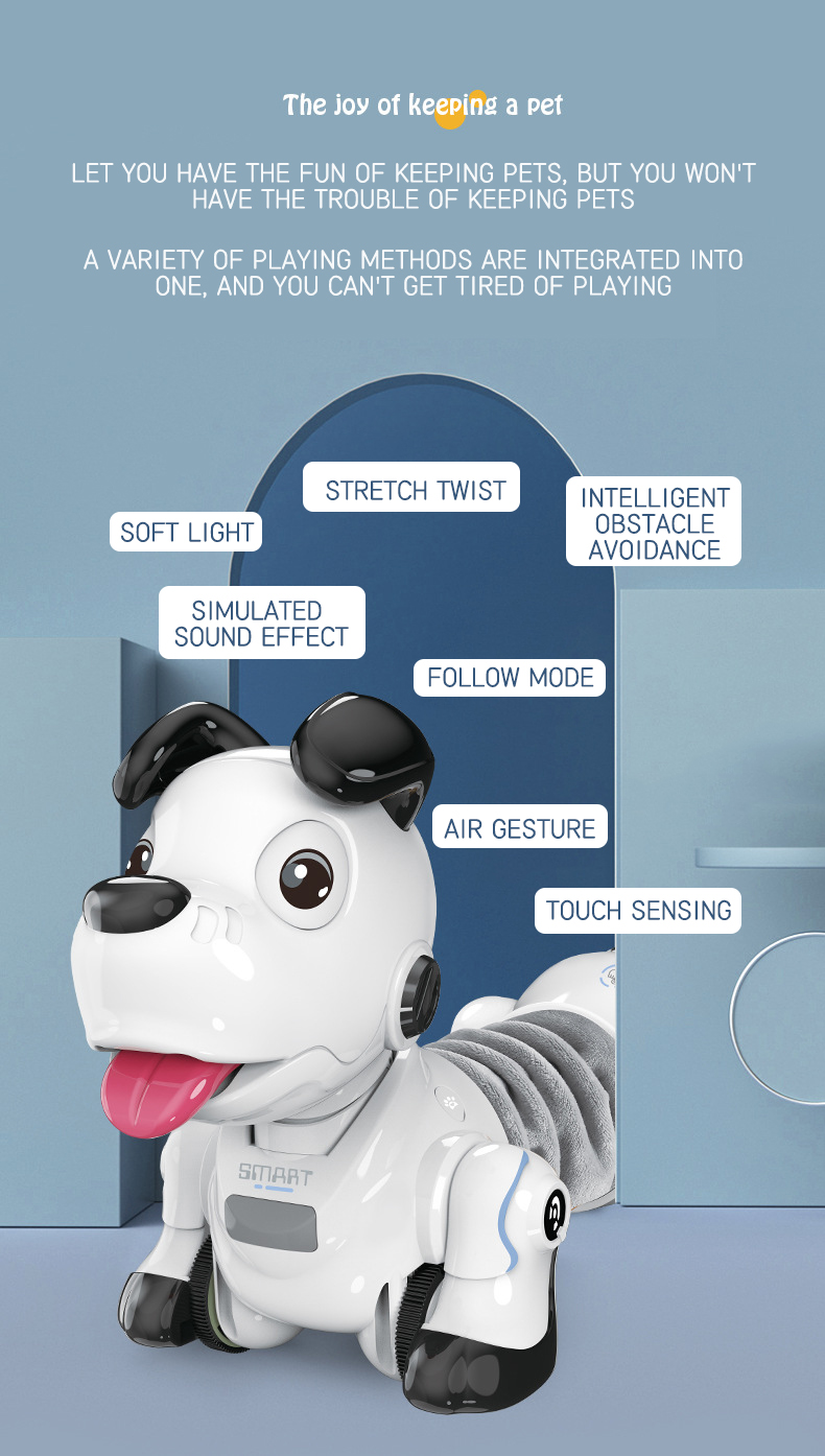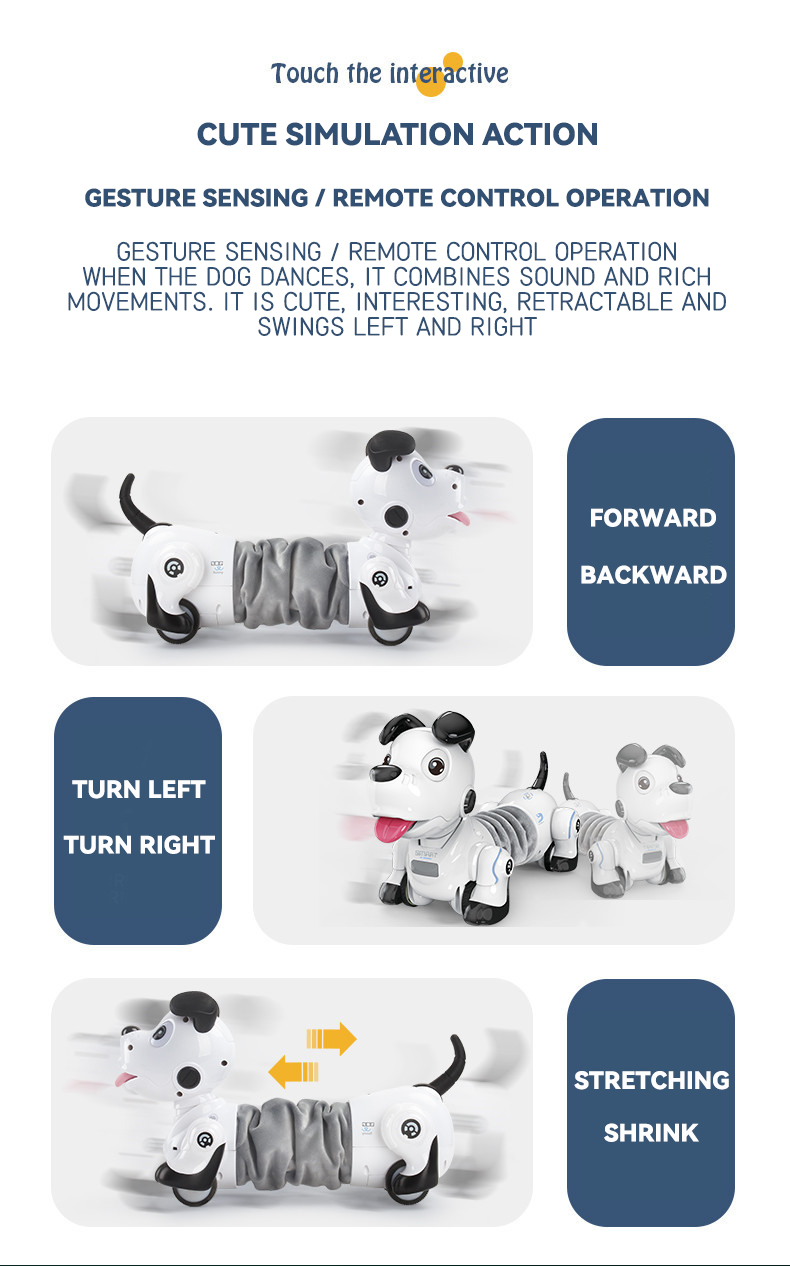 Built-in obstacle avoidance function automatically steers away from barriers. Also features telescopic body movement that flexibly extends, vividly simulating real dachshund gestures for engaging play.