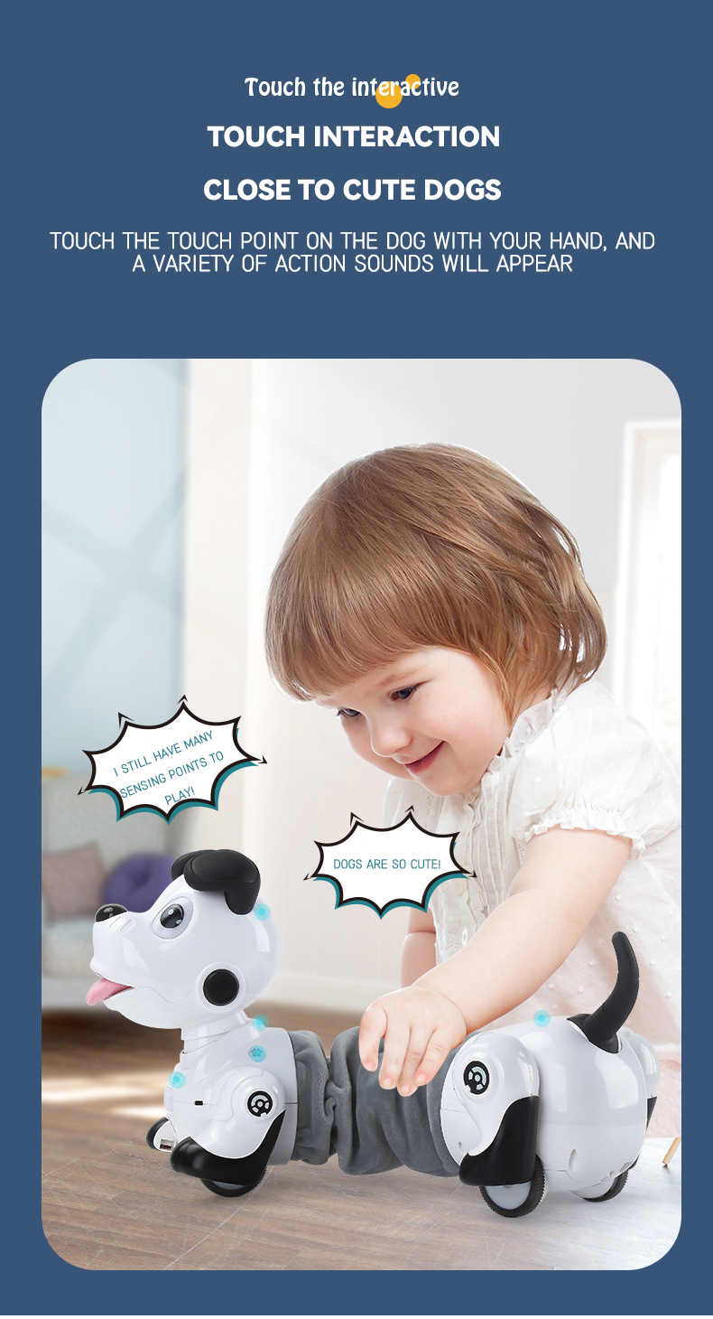 Equipped with touch sensor—petting the dog's head or body triggers relevent reactions, enhancing human-machine interaction warmth and cultivating children's love and responsibility.