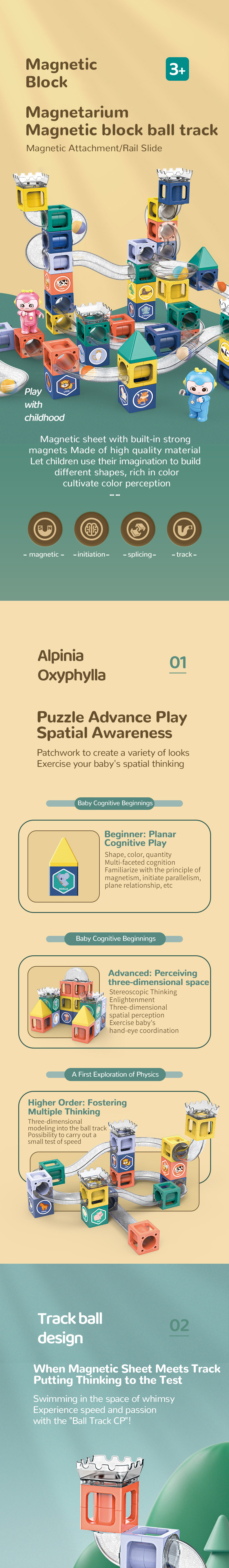 Kids montessori Magnetic Tiles Building Blocks DIY Assembling Rolling Ball Racing Track Toys Equipped with Dolls