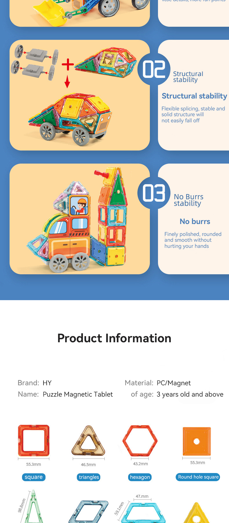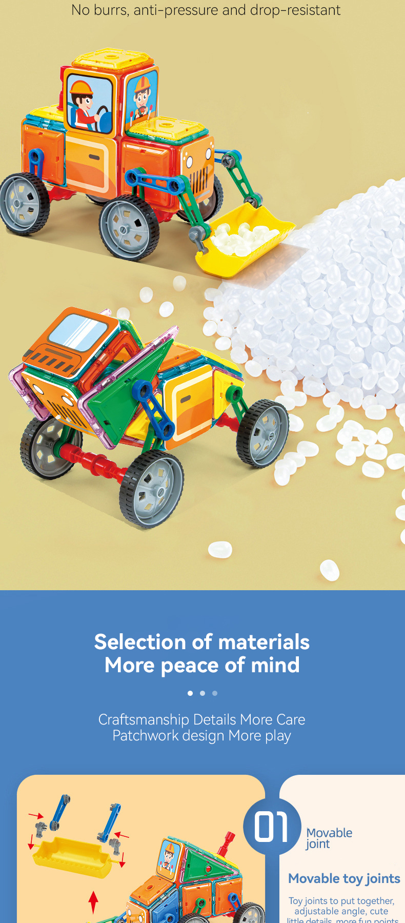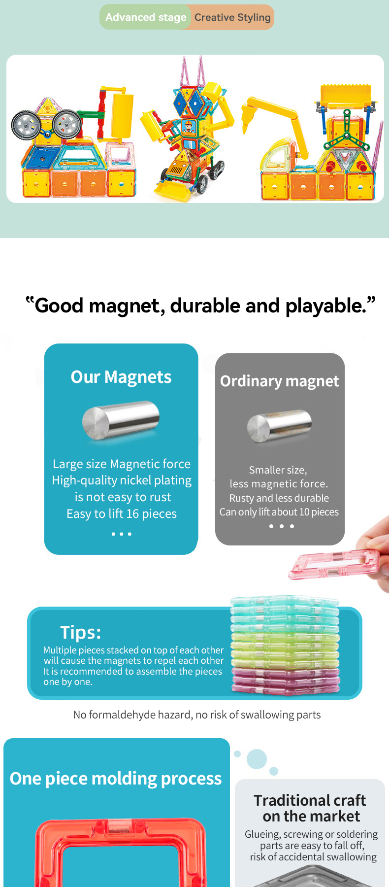 In conclusion, our Magnetic Tiles are a valuable addition to any child's toy collection, offering a wide range of benefits including educational support, fine motor skills development, parent-child interaction, and safety. With their strong magnetic force and endless possibilities for building, these tiles are sure to provide hours of entertainment and learning for children of all ages. Invest in our Magnetic Tiles today and watch as your child's imagination and skills flourish!