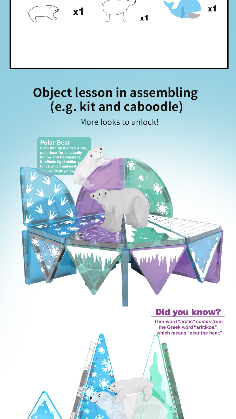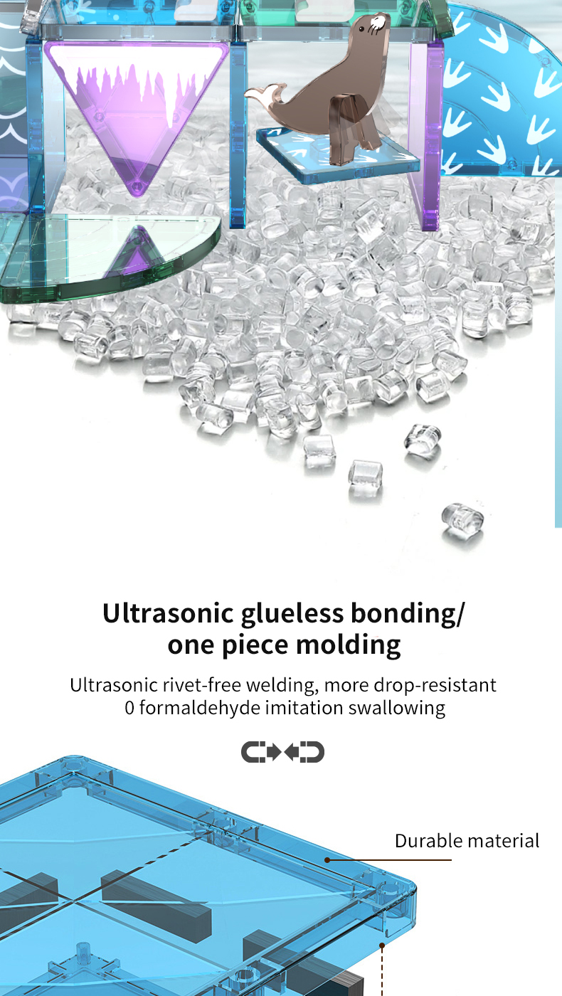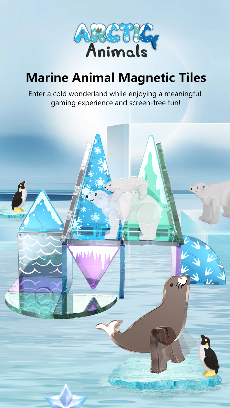 The DIY assembly aspect of these magnetic tiles encourages children to use their spatial awareness and problem-solving skills as they create their own unique sea animal scenes. The snowflake patterns on the tiles simulate a magical ice and snow environment, adding an extra element of wonder to the play experience.