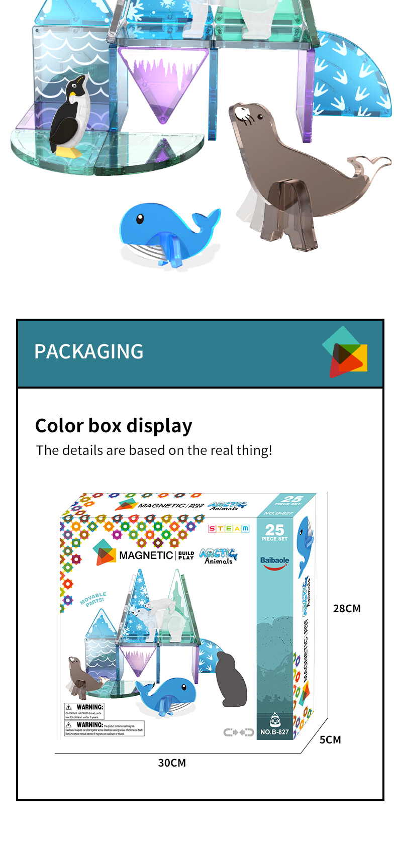 Introducing our latest innovation in educational toys - the Sea Animals Magnetic Building Tiles! Designed to inspire creativity and imagination, these 25pcs magnetic building tiles are the perfect way to engage children in hands-on learning. With a sea animals theme, including adorable penguins, sharks, sea lions, and polar bears, these tiles provide a fun and interactive way for kids to explore the wonders of the ocean.