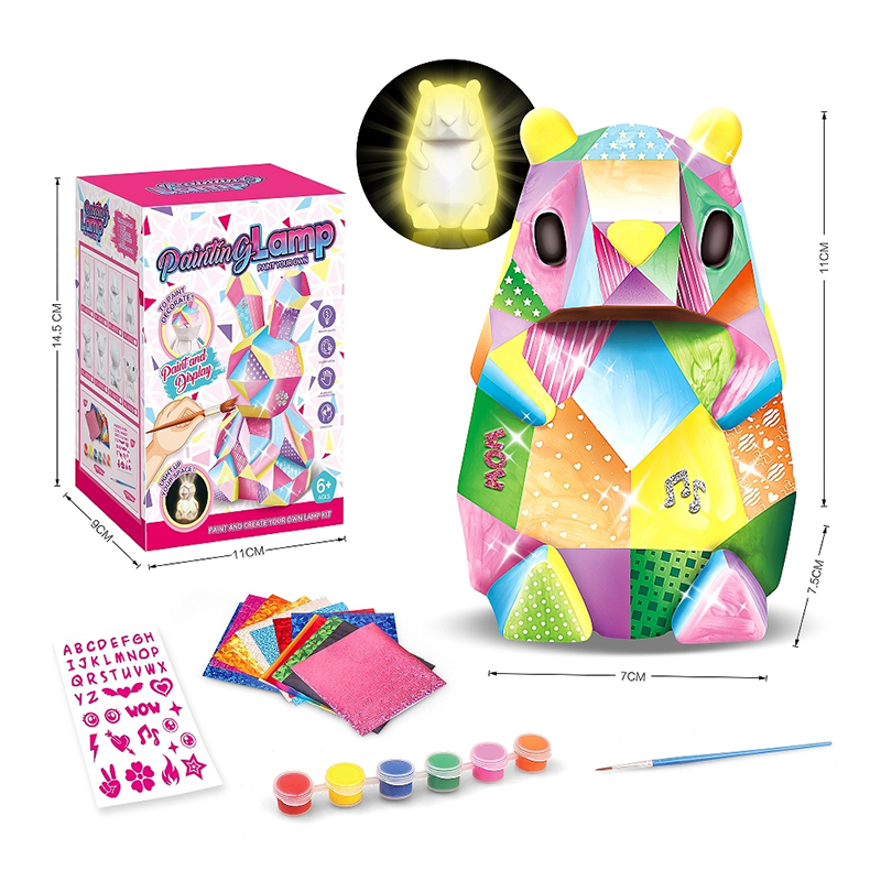 In addition to being an entertaining pastime, these night lamps serve as a practical item in a child's bedroom, providing a comforting and gentle glow at night. The soft illumination helps create a soothing environment, perfect for bedtime stories or as a nightlight for those who are afraid of the dark. With its dual purpose as both an art project and a functional lamp, this toy offers endless hours of enjoyment and learning opportunities for young children.