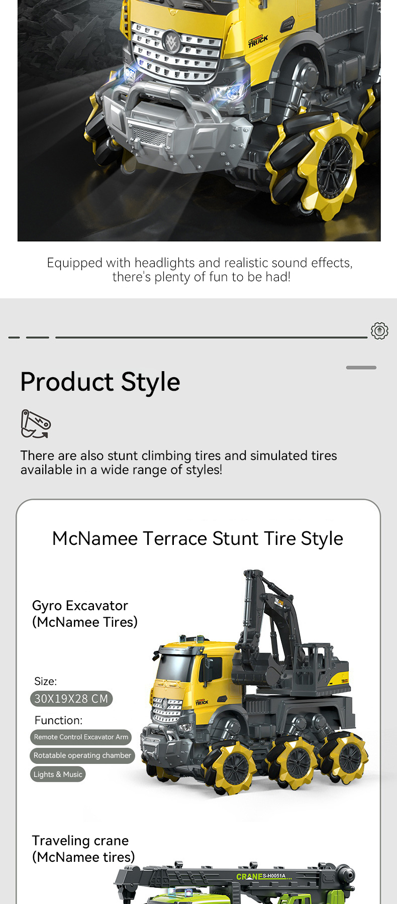 Forward, Backward, Left Turn, Right Turn, Dazzling Lights, Automatic Demonstration, 7-Channel Engineering Vehicle, 40 MHz Remote Control Operation, Excavator One Click Rotation For Excavation