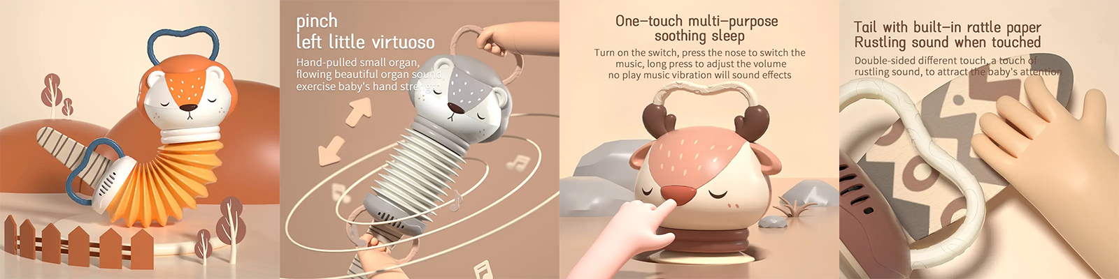 In addition to its entertainment value, the Baby Musical Accordion Toy also serves as a baby sleep comforter. Its gentle and soothing sounds can help calm and lull your baby to sleep, creating a peaceful and relaxing environment for your little one. The accordion toy is designed to be flexible and can be bent and stretched freely, allowing your baby to exercise their hand strength and arm stretching while having fun.