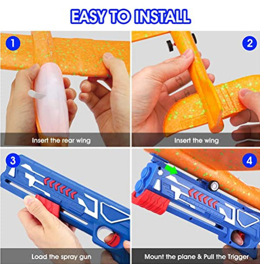 The versatility of the Airplane Launcher Toys is what makes them stand out. You can choose to throw the plane by hand for a traditional flying experience, or you can attach it to the gun for an exhilarating launching experience. The LED lights on the plane make it even more exciting to watch as it flies through the air, making it a perfect toy for playing outside, whether it's in the park, at the beach, or in your backyard. Plus, with 2 guns and 2 planes included in the set, you can easily play with your partners and have endless fun competing to see whose plane can fly the farthest or do the coolest tricks.