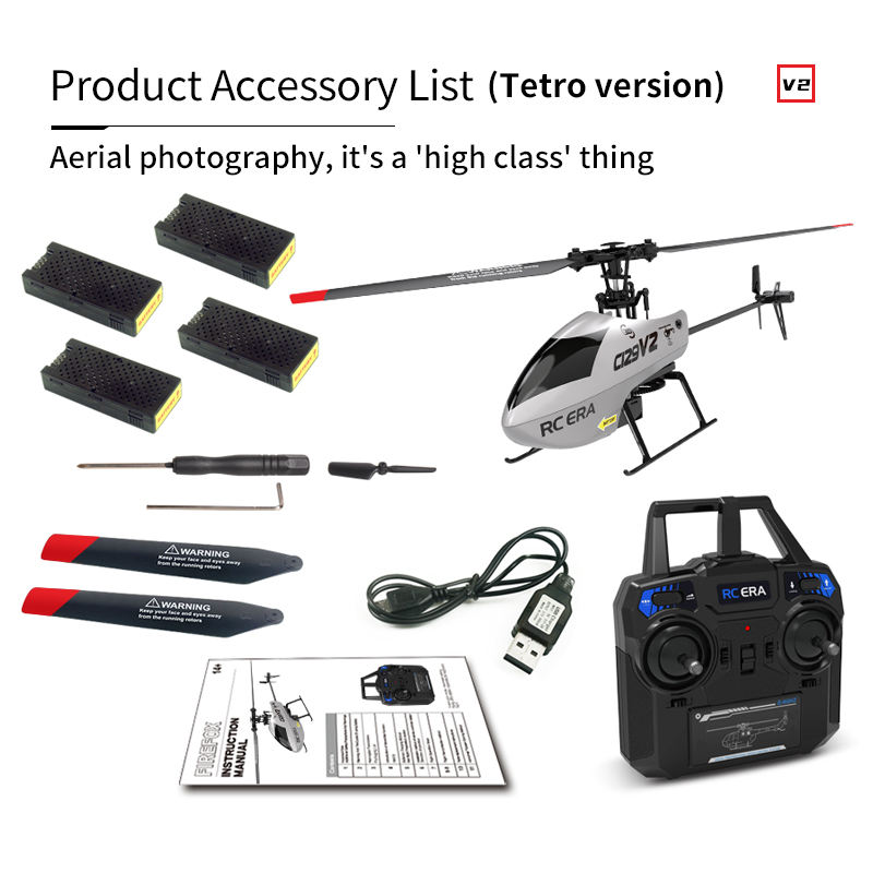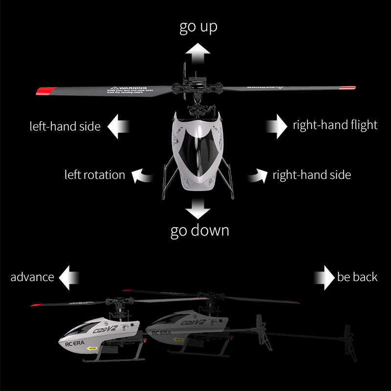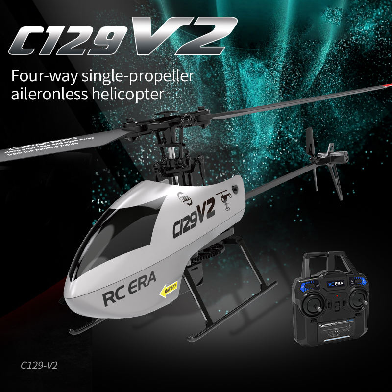 What sets the C129V2 helicopter apart is its innovative design. Unlike traditional helicopters, this model adopts a single-blade aileron-free design with a 6-axis electronic gyroscope for stability enhancement. Additionally, a barometer is added for altitude control, resulting in a more stable and easier-to-operate flight. The helicopter also features a pioneering 4-channel aileron-free 360 ° roll mode, making flying more enjoyable than ever before.