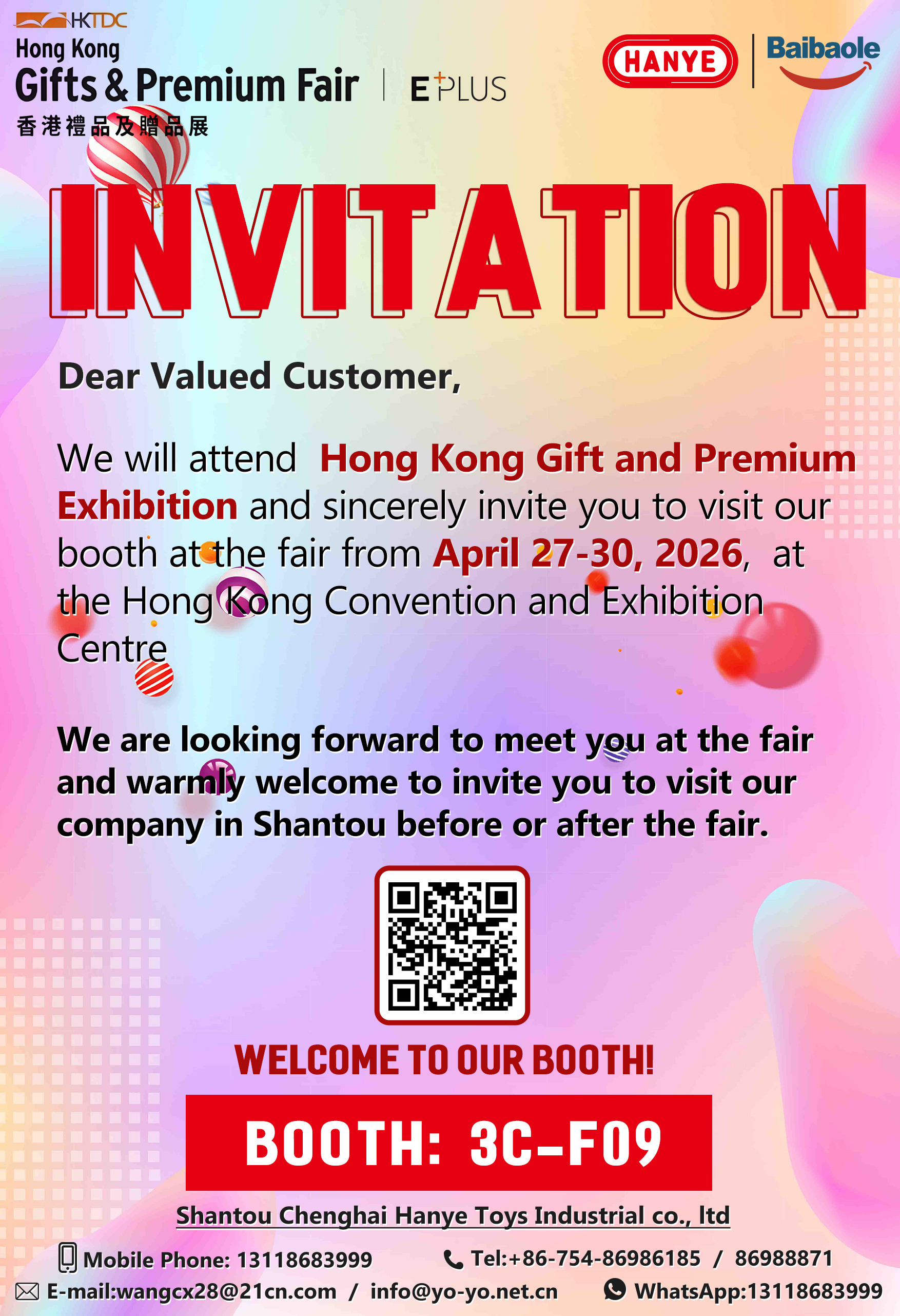Ruijin Baibaole cordially invites all existing and prospective clients to visit Booth 3C-F09 at the Hong Kong Gift & Premium Fair (April 27–30, 2026). The company will present an expanded selection of its products and is available for discussions on OEM/ODM partnerships, custom designs, and scalable supply chain solutions.