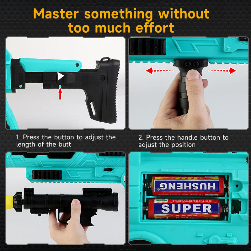 Introducing the latest must-have toy for boys - the 2-in-1 Electric Mortar Launcher Rocket and Bubble Shooting Game! This innovative toy combines the excitement of shooting soft bullets and bubbles with an adjustable sight multiplier and handle for hours of interactive fun.