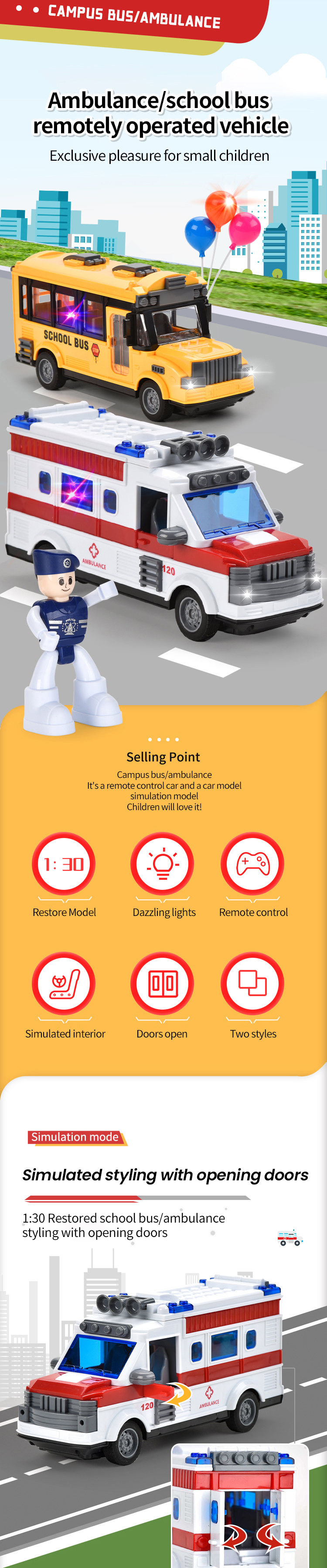 Remote Control Open Door Car Model Kids Gift 1:30 Simulation RC School Bus/ Ambulance Toys with Light