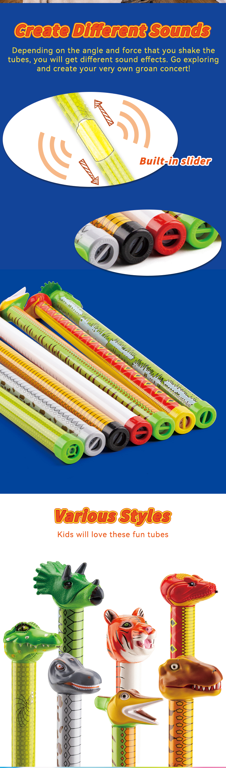 - Shake the sound pipe, and through the flow of air, the sound pipe will make a sound. The sound emitted by the sounding tube varies from different angles.