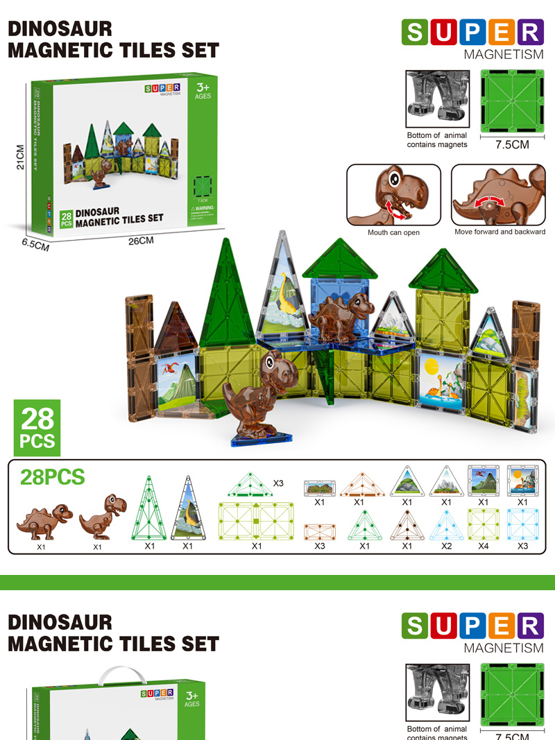 In conclusion, our Dinosaur Theme Magnetic Tiles Toy Set is not only a source of endless entertainment but also a valuable tool for promoting cognitive development and learning. With its combination of active play, educational benefits, and safety features, this toy set is a must-have for any child's toy collection. Let your child embark on a prehistoric adventure while honing essential skills with our Dinosaur Theme Magnetic Tiles Toy Set.