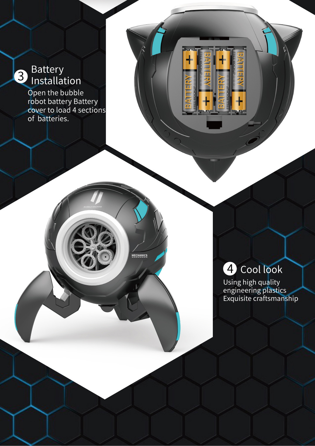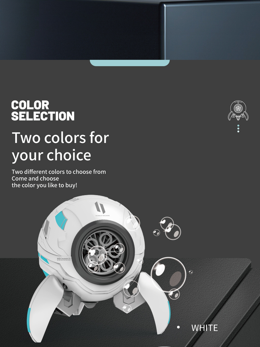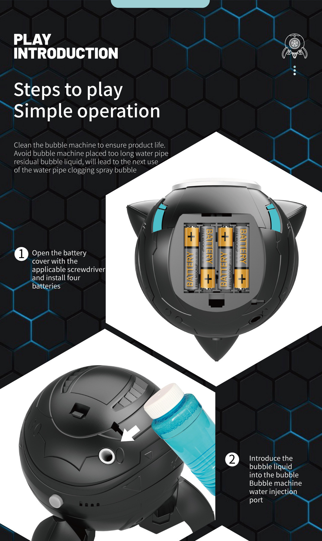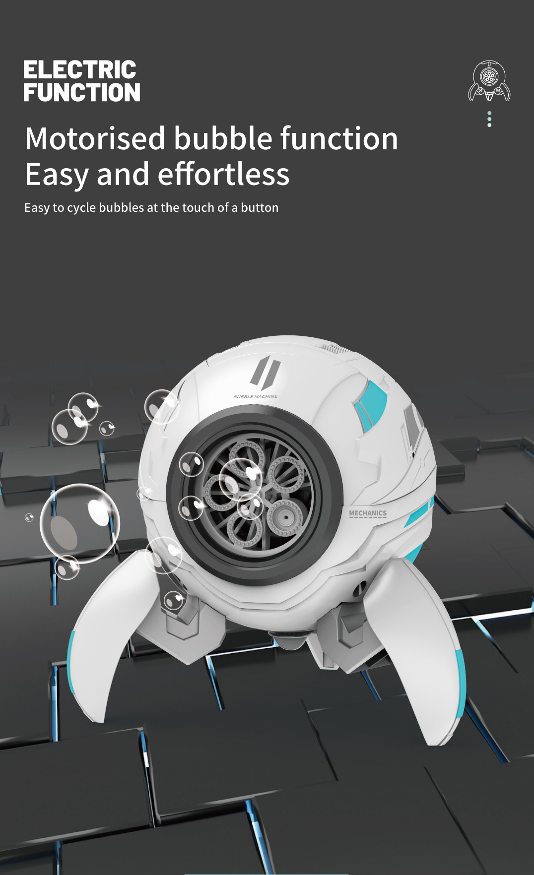 2. The toy features a light and audio feature, and it can blow bubbles.