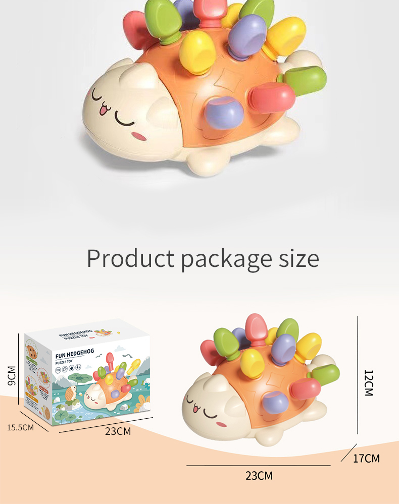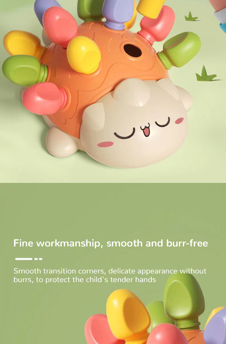 Introducing our new Spike Hedgehog Toy! This adorable and colorful toy is not only super fun for babies to play with, but also provides a great opportunity for early education and skill development. The Spike Hedgehog Toy features a cute hedgehog body with vibrant and colorful spikes. These spikes are not only eye-catching, but also serve as a great tool for helping babies recognize and learn different colors. By inserting the spikes into the hedgehog's body, babies can practice their fine motor skills and hand-eye coordination, while also engaging in early education activities.