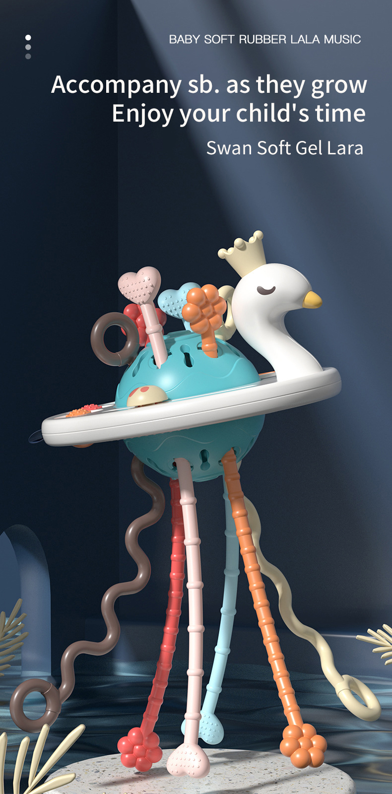 Toddler Sensory Montessori Educational Toys Infant Teething Toy Baby Fine Finger Movement Skill Training Swan Pull String Toy