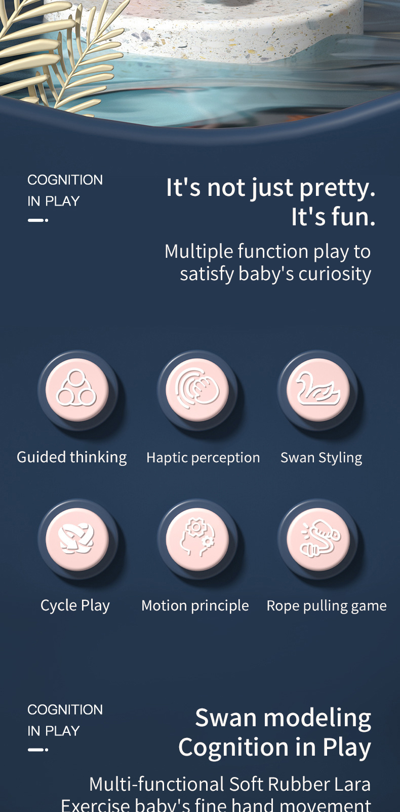 Introducing our adorable and engaging pull and push string toy, featuring a delightful cartoon swan design that will captivate and entertain babies and toddlers. Our pull and push string toy comes in a variety of colorful designs, making it the perfect addition to any child's toy collection. This multifunctional toy is not just a source of entertainment; it also provides numerous developmental benefits for young children. The pull and push action helps to strengthen hand and finger muscles, promoting fine finger movement skill training and aiding in overall hand-eye coordination. This makes it an ideal toy for Montessori and early education environments, as well as for stimulating sensory development in babies.