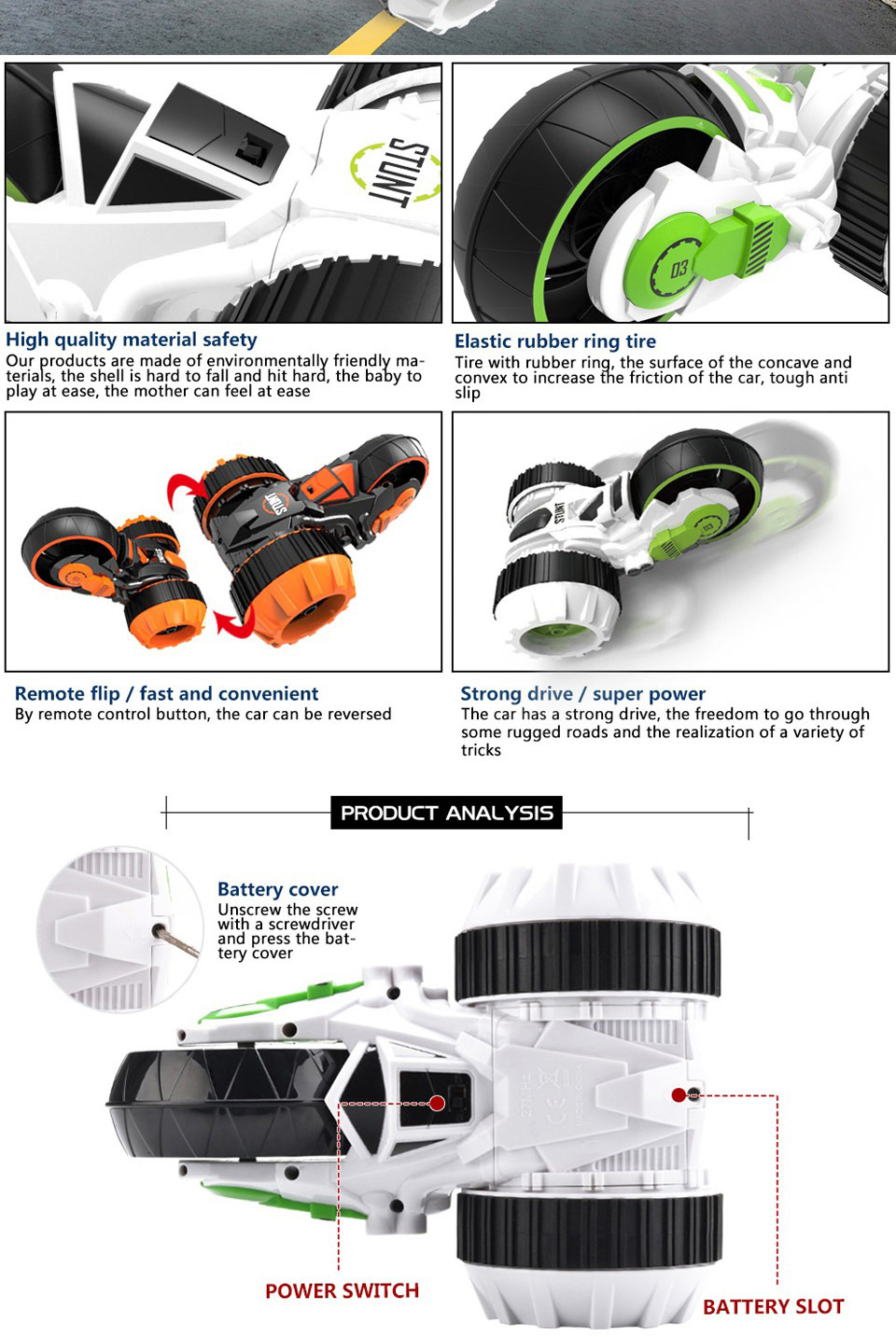 USB Rechargeable 3 Rounds Battery Operated Remote Control Flip Tricycle Cool Rc Rolling Stunt Car Toy for Kids Boys Gift